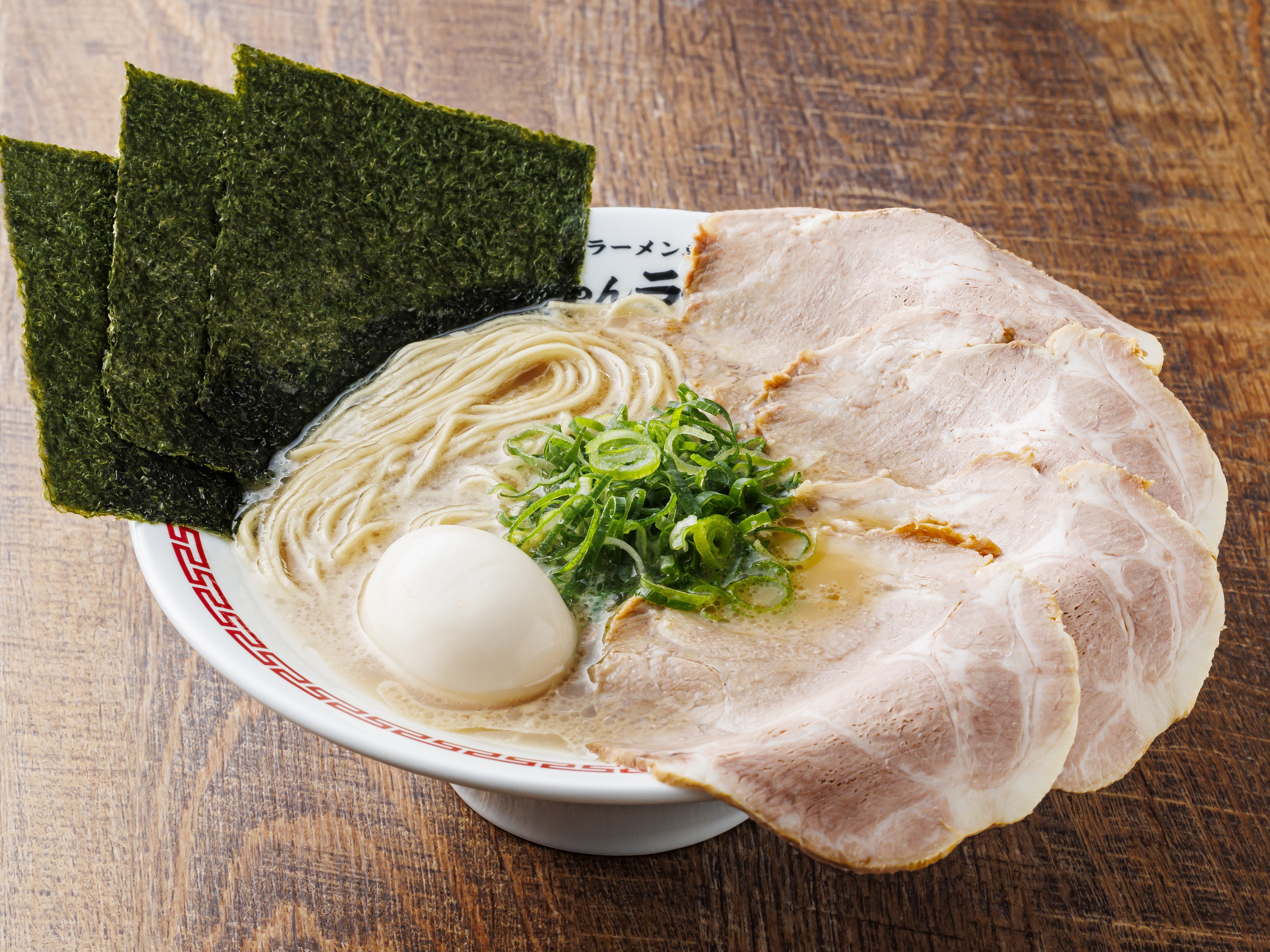 A slightly sweet and addictive soup with simple but deep taste of pork bone broth featuring special ordered fine noodles with elastic taste. Adding toppings like special roast pork, semi-boiled ajitamago egg and seaweed, it also looks gorgeous.