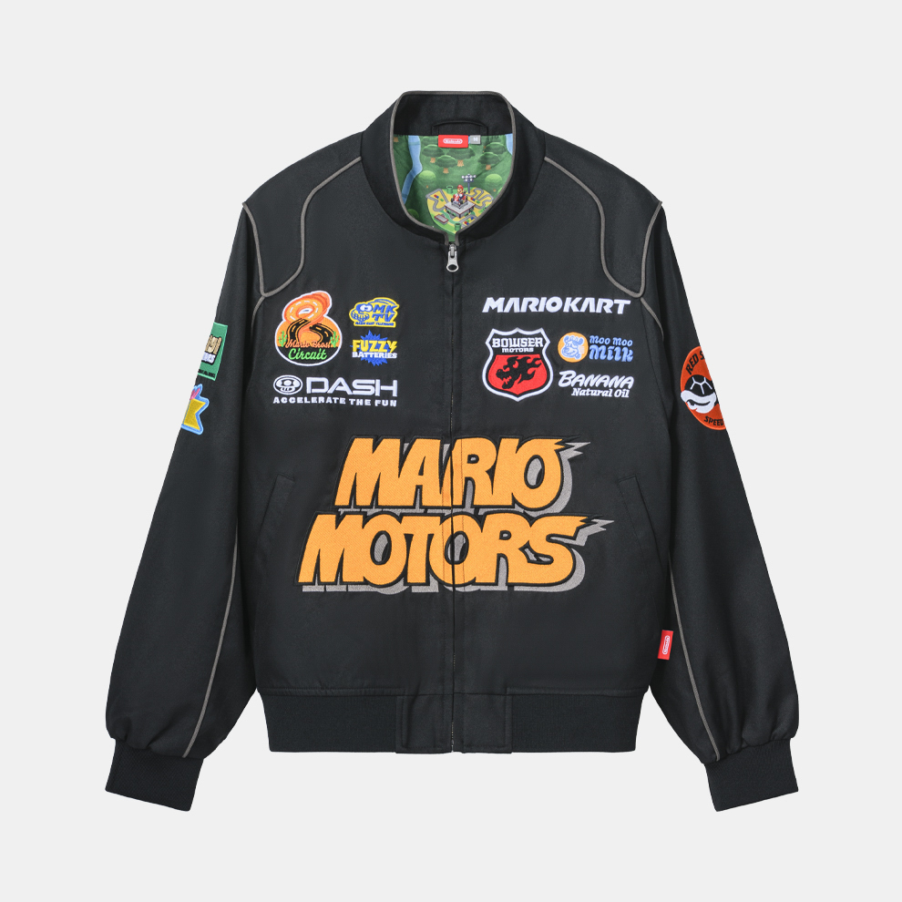 These original products are themed around the Nintendo Switch 2 software, 'Mario Kart World'. These are the first products in the ‘Mario Kart’ series available at Nintendo's official stores. This racing jacket is a piece that demonstrates attention to detail in both its external and internal designs. You'll feel as though you're racing in Mario Kart! Sizes available: 130, M, L and XL.