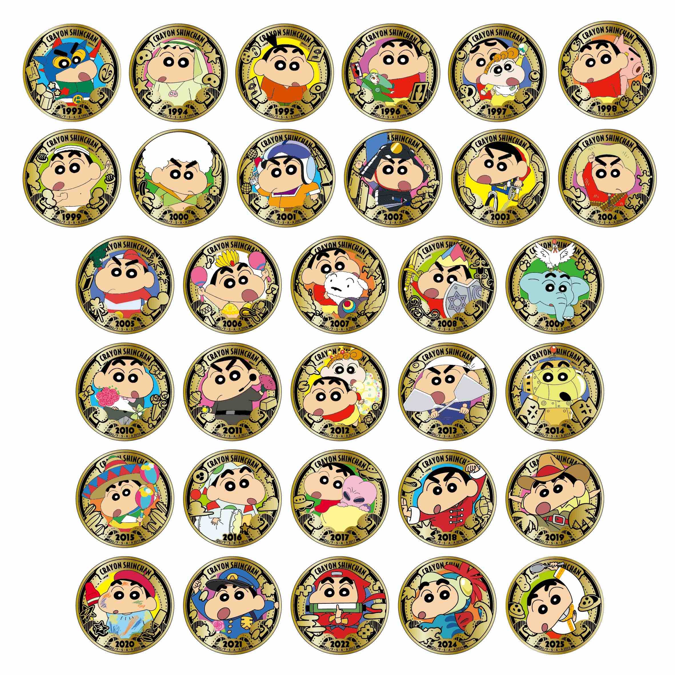 ■Featured item: ⑥Crayon Shin-chan Cinema Parade Tour 'Crayon Shin-chan Movie 24-karat gold-plated can badge' (random selection of 32 types). 1,100 yen (including tax)