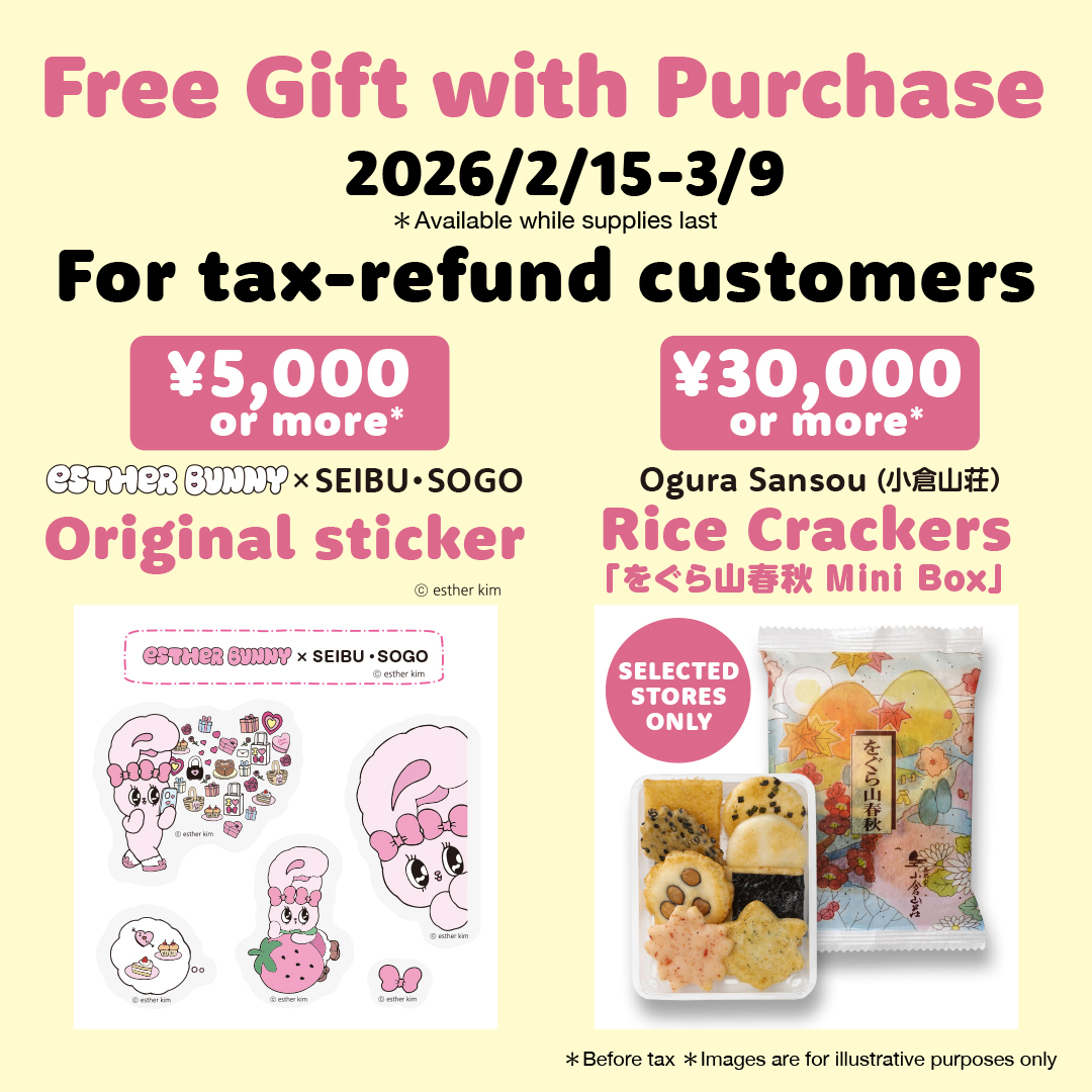 活動期間,在各店的免稅櫃檯,對免稅購物滿5000日元以上的前700名顧客將贈送以“ESTHER BUNNY×西武崇光原創貼紙(1張)“。